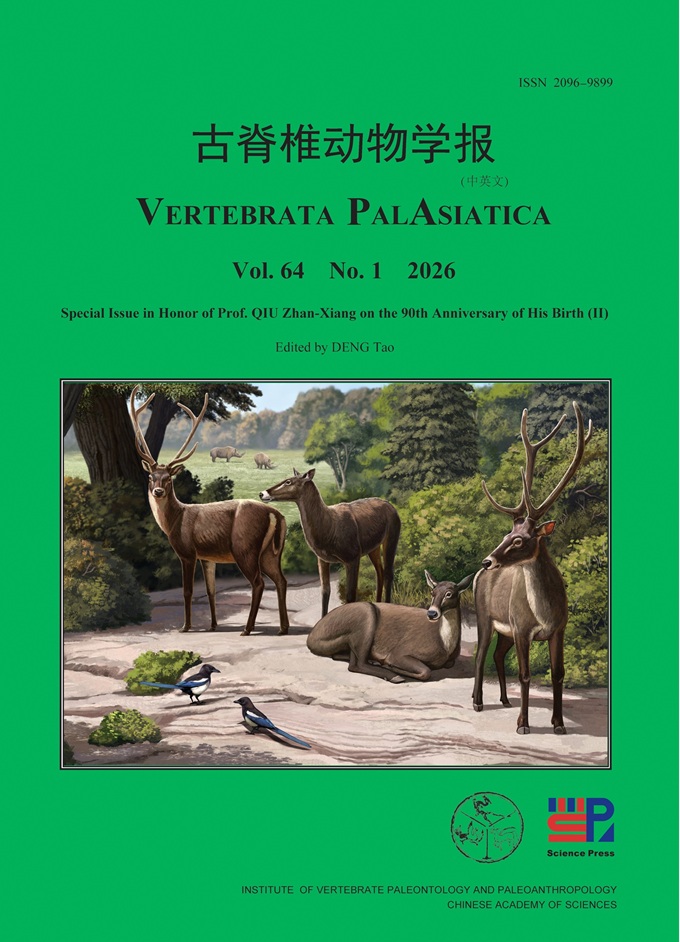 Cover image: Ecological Reconstruction of Metacervocerus longdanensis from the Longdan Fauna, Early Pleistocene, Linxia Basin, Gansu. The Longdan Fauna, a representative early Early Pleistocene fauna in China, which was discovered and named by Prof. Qiu Zhanxiang and his colleagues, comprises a mix of forest and grassland species, indicating an ecological landscape that alternated between open and closed environments. Metacervocerus longdanensis, a large deer species within this fauna, preferred to inhabit forest edges. See details in the paper by Wang Shi-Qi et al. (Illustration: Ye Jian-Hao)